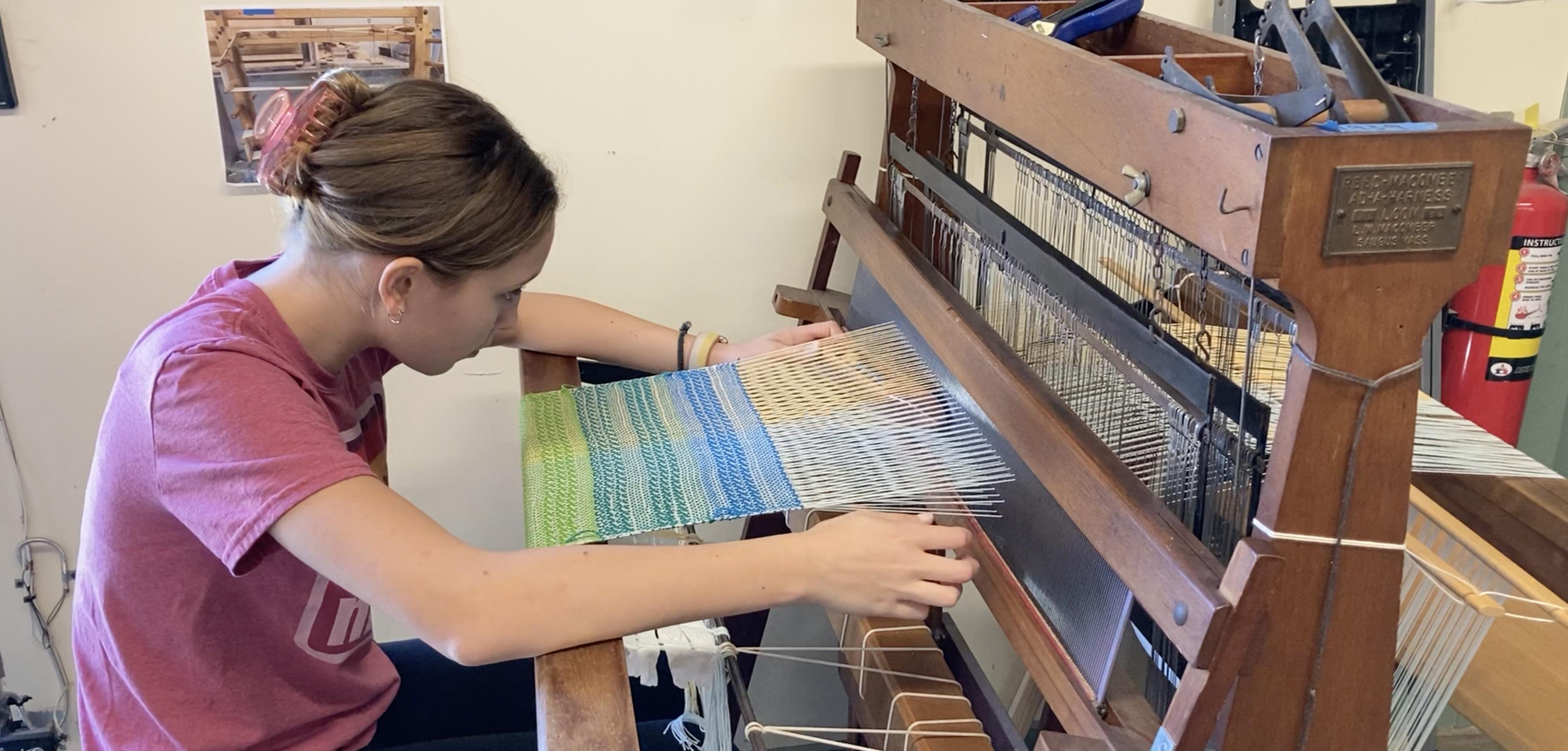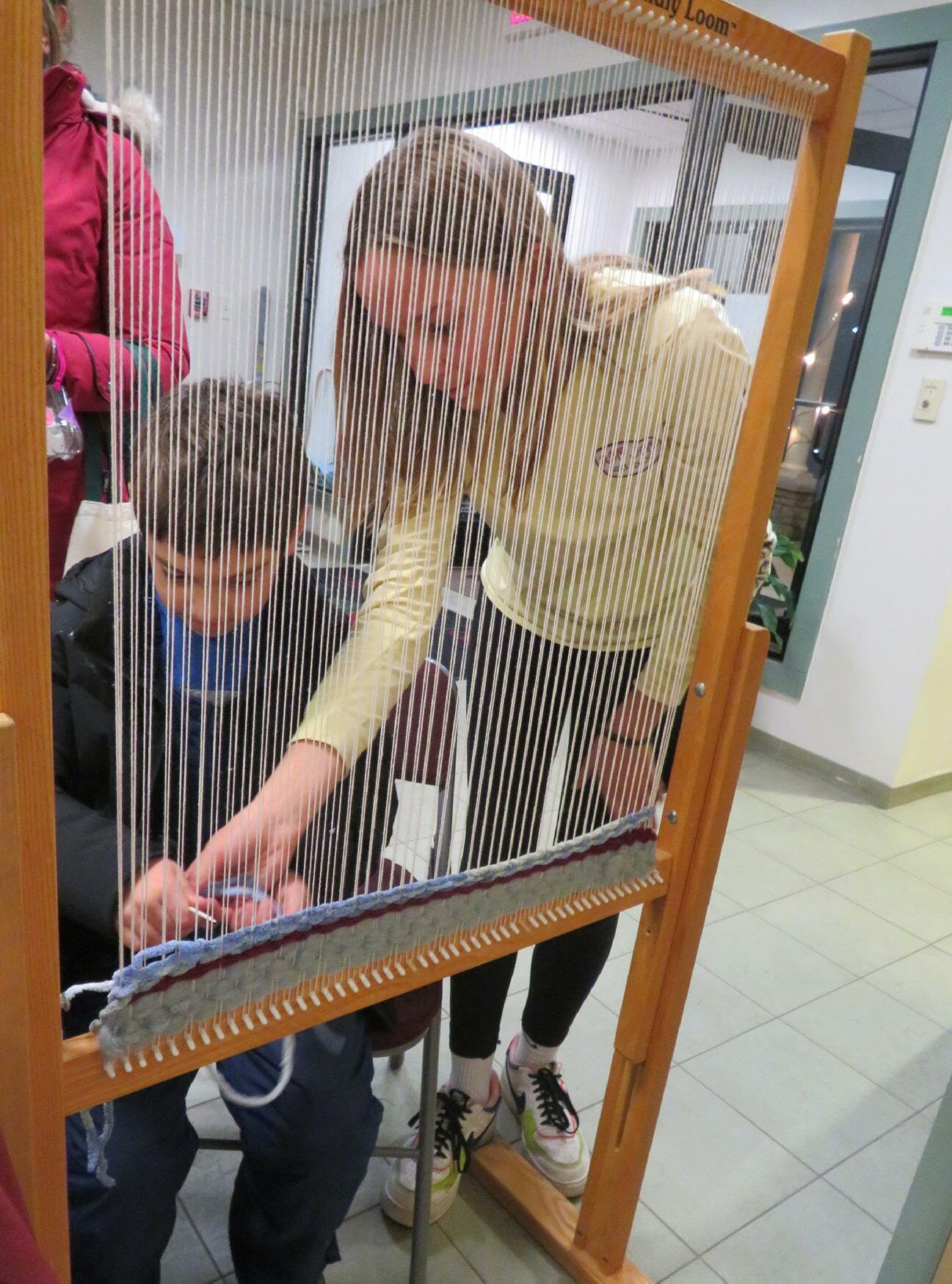 MS students are weaving on small looms they built in the Makerspace and also giving the floor loom a try.