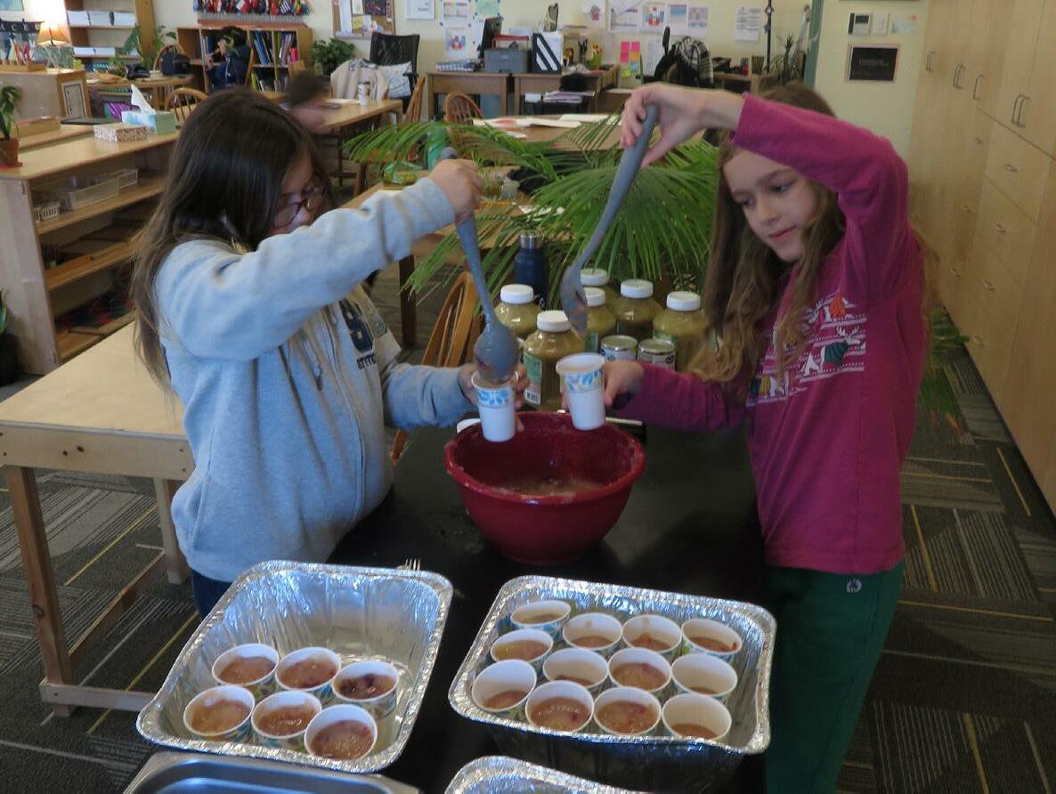 To celebrate community this Thanksgiving, the children have been cooking items to share with the other classrooms in their level by baking cornbread muffins and serving up cranberry applesauce. The students also wrote words of affirmation for their classmates!