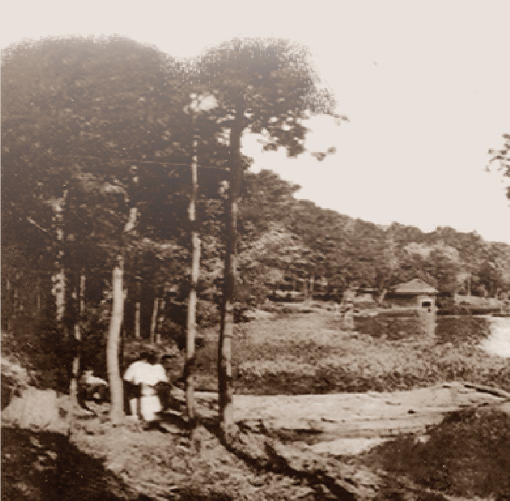 Mrs. Lockwood, a tall woman, usually wore a long flowing gown. She was often seen striding about the property carrying a large shepherd’s crook to keep the snakes at bay or sitting in the attractive stone “tea house” overlooking the lake. The couple entertained a parade of guests throughout the summer who spent their time rambling about the grounds or cooling off in the lake.