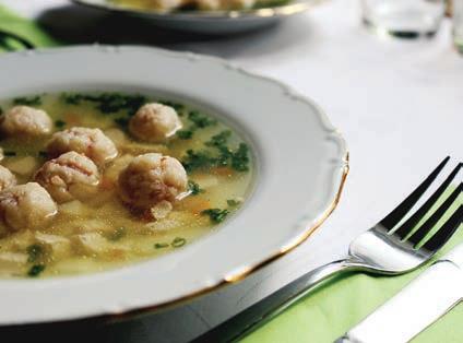 Thicken broth with cornstarch and water. Bring broth to boil a er starch is in broth. Add thawed spinach, pasta, and mini meatballs to broth. Cook pasta according to box directions.