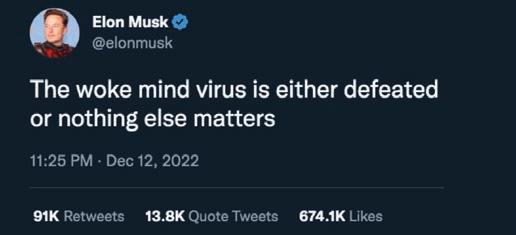iticians are making anti-wokeism a major part of their platforms, how all the mainstream right-wing pundits are doing everything they can to make their audiences more panicked about how “woke” everything is getting, and how you’ve got Elon Musk talking about “the woke mind virus” in exactly the same way more liberal-aligned oligarchs champion social justice issues?