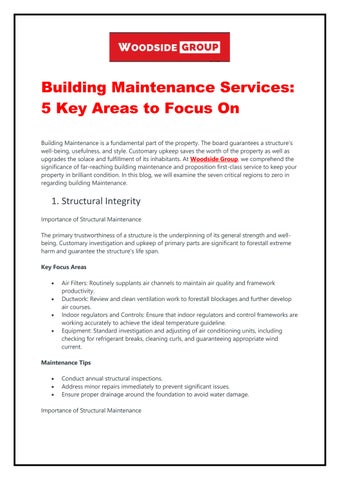Building Maintenance is a fundamental part of the property. The board guarantees a structure's well-being, usefulness, and style. Customary upkeep saves the worth of the property as well as upgrades the solace and fulfillment of its inhabitants. At Woodside Group, we comprehend the significance of far-reaching building maintenance and proposition first-class service to keep your property in brilliant condition. In this blog, we will examine the seven critical regions to zero in regarding building Maintenance.