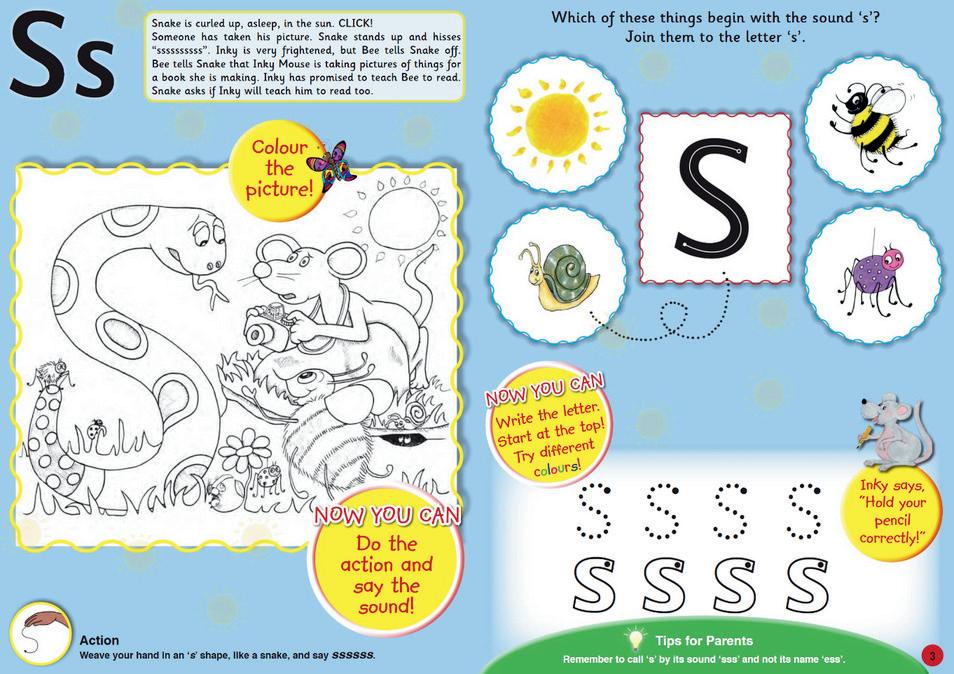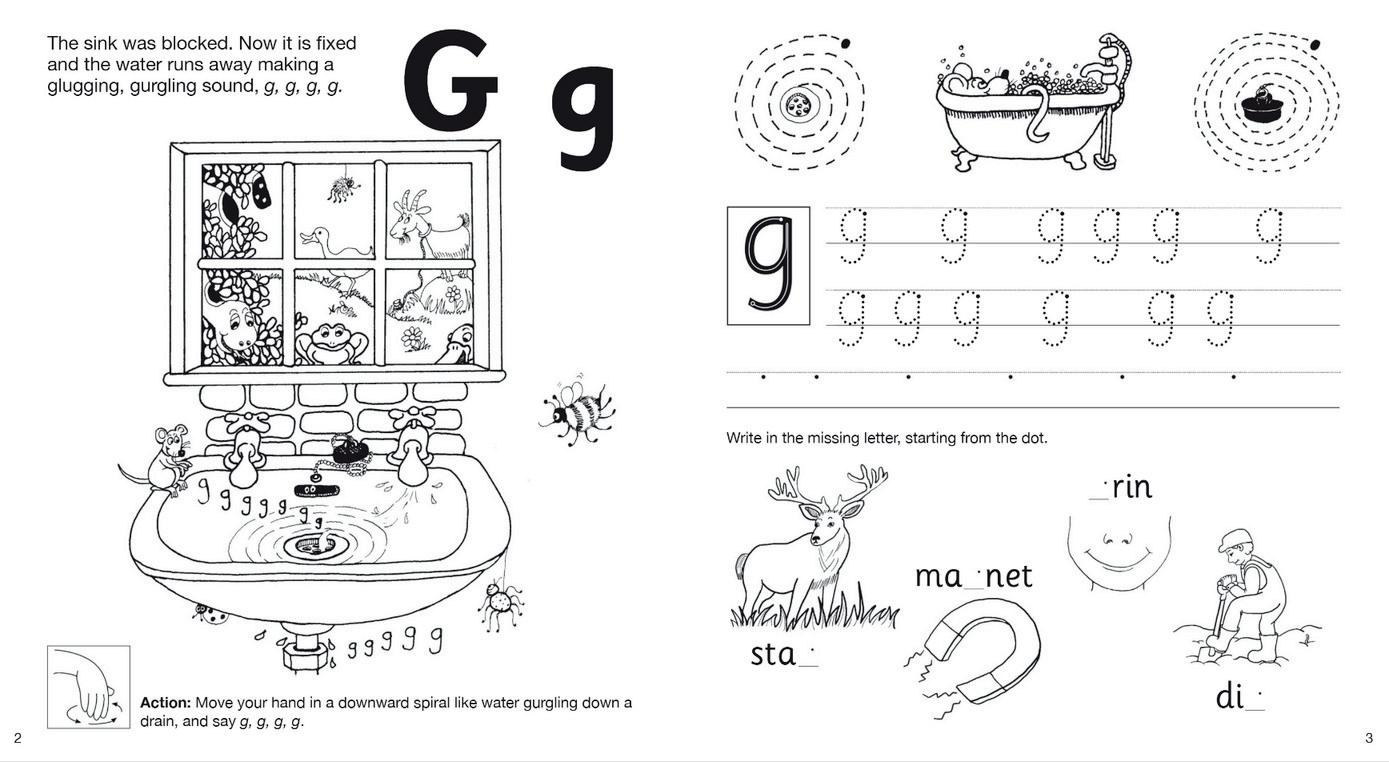 Activity Books are full of sticker sheets, colouring in, handwriting practice, puzzles, mazes, games, craft activities, word and picture matching games and flashcards. Workbooks are a fun way for children to put their learning into practice. Each sound is presented with a simple story and action, a letter formation guide and a section for writing practice.