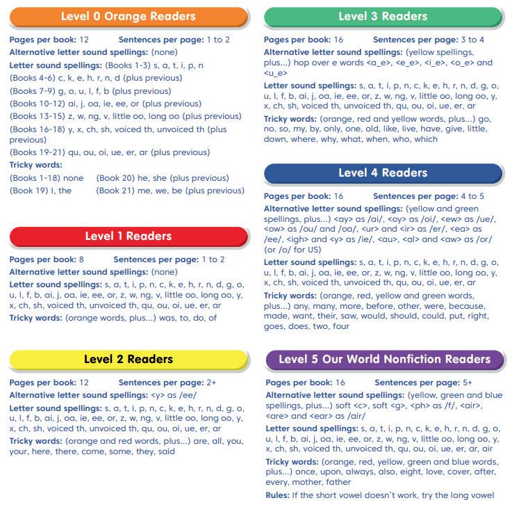 Perfect for the developing reader. With a mixture of fiction and nonfiction, these books feature words that are spelt regularly and can be sounded out with the 42 letter sounds first taught in Jolly Phonics. Increasing in difficulty from level 1.