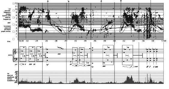 On disp ay is he graphic score ca led Fel Even s by Raymond MacDona d and I ana Halperin which explores re a ionships between geological events and socia relationships using saxophone, voice, drums, doub e bass, French horn, graphic scores and improvisation