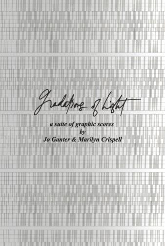 Gradations of L ght is a sui e of seven images co-authored by Mari yn Crispe l and Jo Ganter Ganter provided the gr d- ike struc ures while Cr spel crea ed gestura marks and b ocks of one ha score the music. This suite of prints rejec s color in favor of tona va ues. Gradations of Ligh images move from darkest b ack hrough shadowy greys and si ver y, subt e changes of tone, o harsh contras s of black and white Each one is named for a time of day---Morning, M dday, Twi ight, Night which provides a hematic thread hat links he works