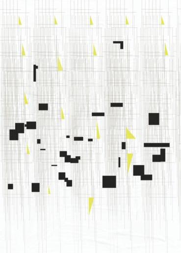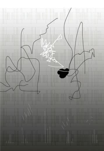 Images on he wa l are accompan ed by sound from recordings made from the graphic scores for individua istening The use of headphones permits he l s ener to in eract wi h he work which is both visual and aural o Gan er has a so taken recordings of previous per formances of Running Under Bridges and Gradations of L ght and used the graphic scores to create animated fi ms projected in the space. These animations add another ayer of nterpreta ion between mage and sound as the ar ist imagines how the musicians take the mages and iteral y make them move On the evening of the exhibition’s opening, there wi l be a ive per formance during which the audience wi l be given an image of Manuscript 2 along wi h the ins ructions he musicians wi l use to per form he piece As a resu t of this s mul aneous engagement of looking a what he musicians are p aying and listening o the musicians interpret the graph c image, the audience wi l be an active par ticipant by contribu ing a new dynamic element to the interp ay of