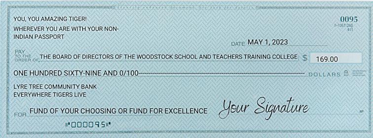 Example of a Properly Filled Check: Note that checks often take several weeks and even months to fully process and credit to Woodstock School’s account 168