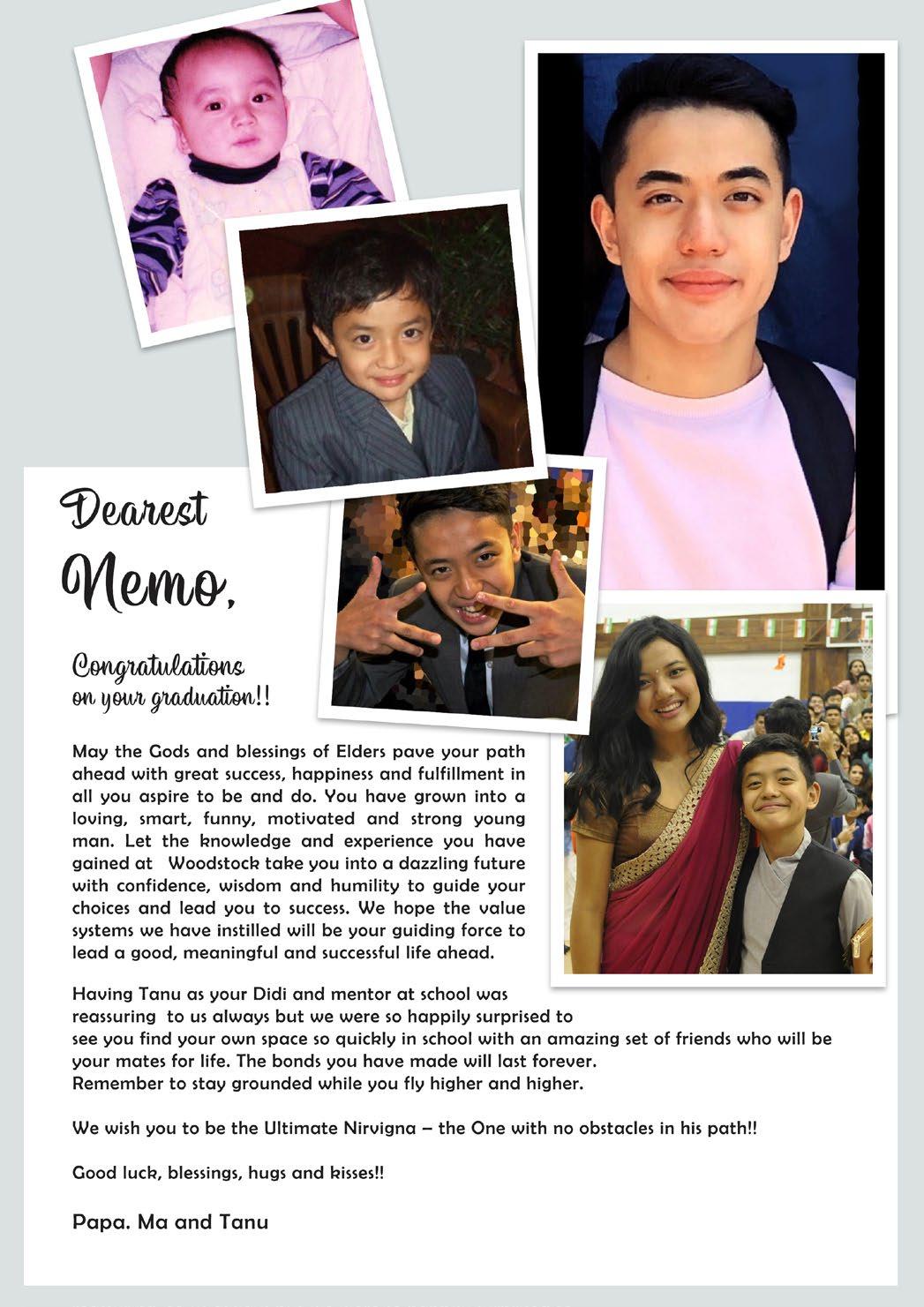 Congratulations on your Graduation! It is one of the important landmarks you have achieved in your life and have a full confidence that you will continue to learn and achieve numerable accomplishments in your life We (Dadi, Nana-Nani, Mummy-Papa, Chacha-Chachi, PhuphoPhupha, Bhai) are proud of you that you are a gentle, kind, sincere, and cheerful young man, brother and friend. On this day we thank God and pray him to continue to bless you as you move forward to have many great experiences in your future Parents are thankful for Woodstock School and teachers who helped us to shape our child into an open-minded, ethical, and kind person.
