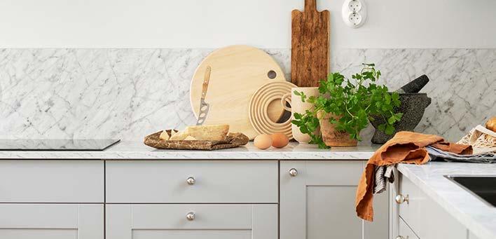 Det traditionella vita köket ger nu vika för mer jordnära kulörer. Den nya färgpaletten består av harmoniska nyanser i grönt, beige och blått som för tankarna till naturen och ger ett behagligt intryck. En skvätt grått i färgen dämpar intensiteten något och skänker köket ro. Dova färger i naturskala passar fint ihop med trärena ytor som även de har seglat upp på topplistan över vad svenskarna vill ha i köket.