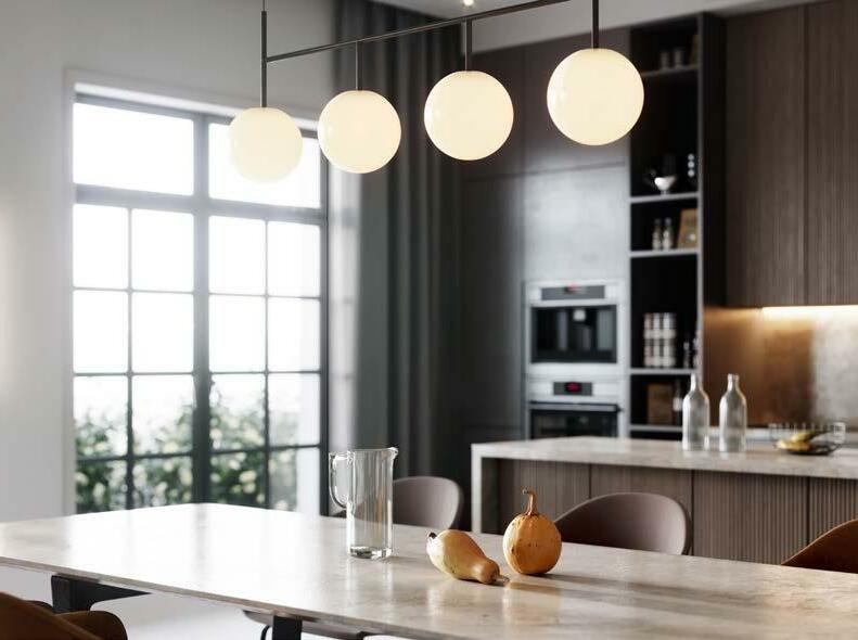 Stämningsbelysning skapar känsla Med rätt belysning får du ett inbjudande och mysigt kök. Stämningsbelysningen består ofta av en eller flera taklampor ovanför köksbordet. Använd gärna en skärm som lyser upp hela bordsytan men bländar av för bordsgästen.