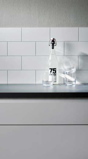 Kakellaminat som stänkpanel ger ett mer traditionellt utseende ihop med bänk skivan då det liknar vanligt kakel. Passar utmärkt både till laminatbänkskiva som till massivträ. Du sparar tid jämfört med att tex kakla då laminatet smidigt limmas på väggen. Finns i olika utföranden och i färgerna vit, svart och ljusgrå.