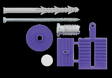 Komplett kit för montering av Adjufix originalsystem. Räcker för att montera två mindre fönster eller en dörrkarm. Innehåller hylsor, pluggar, skruvar och täcklock.