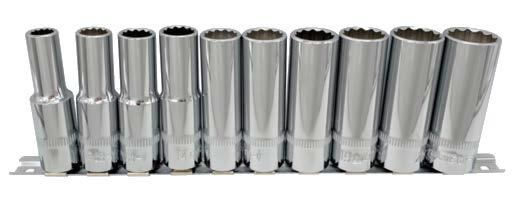 • 12pt. Professional deep sockets: 10,12,13,14,15,17,18,19,21,22mm