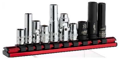 • Includes a variety of 10mm sockets for both 1/4” and 3/8” drives: standard, deep, impact, dual, uni-joint, and spline