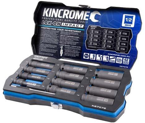 • 12 LOK-ONTM Metric 3/8” Deep Sockets: 8 -19mm