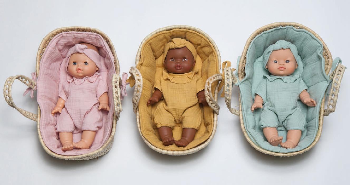 - 100% organic cotton fabric and vinyl body (the dolls do not contain phthalates)