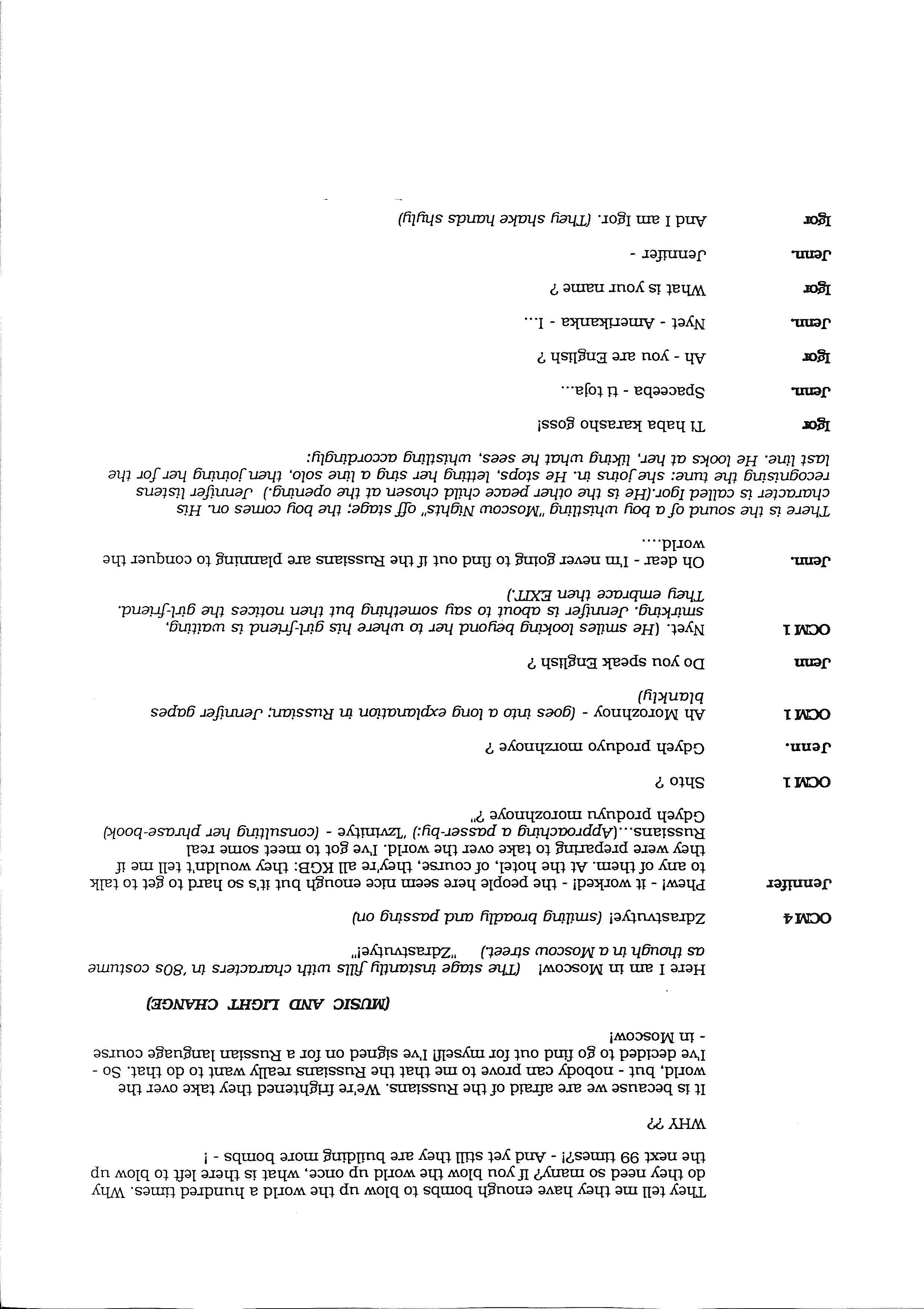 The 1986 US-Soviet Breakthrough Tour Script
