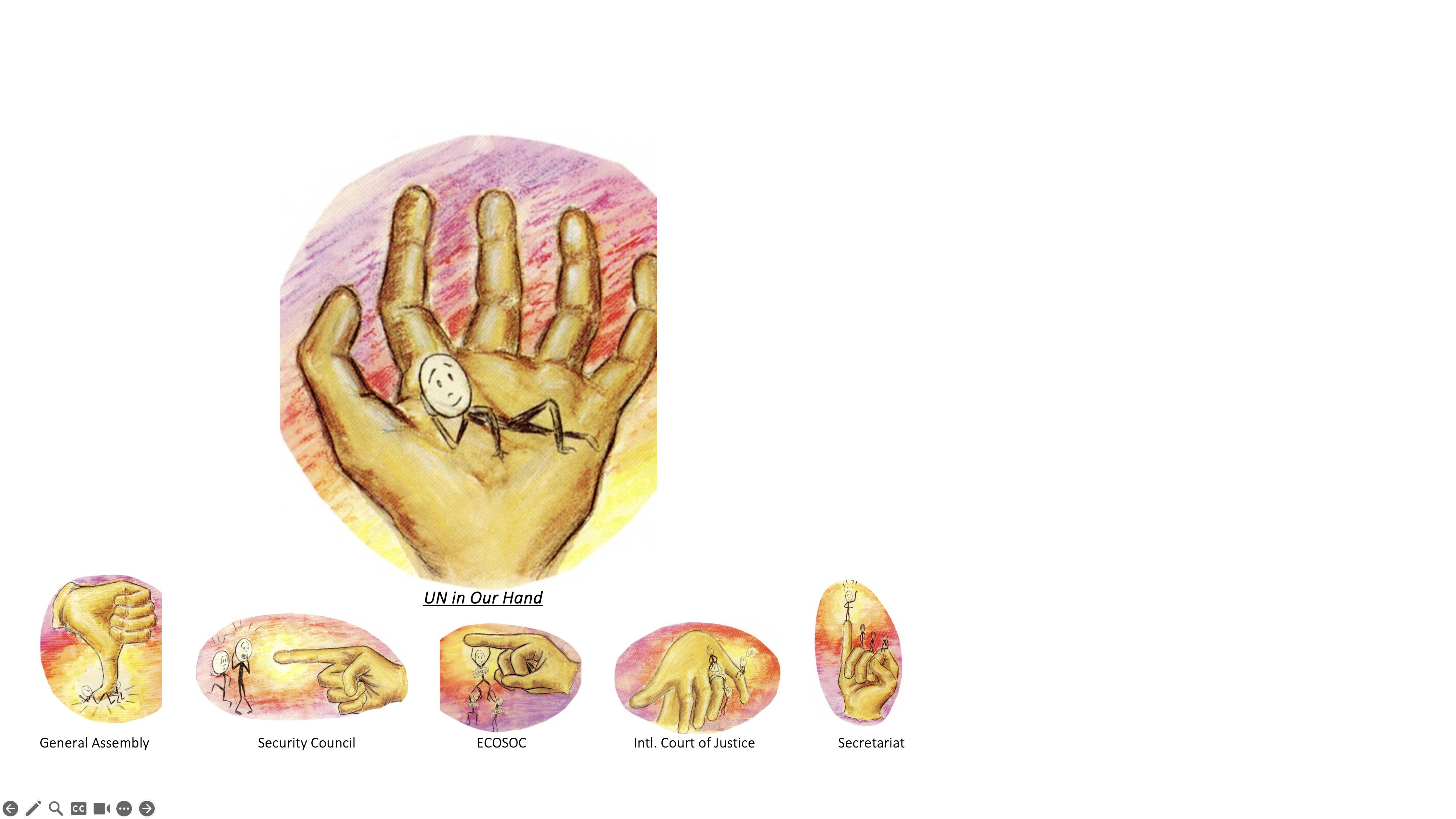 The animation shows the 5 x main organs of the UN as the 5 x fingers of the Hand:
