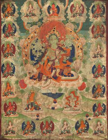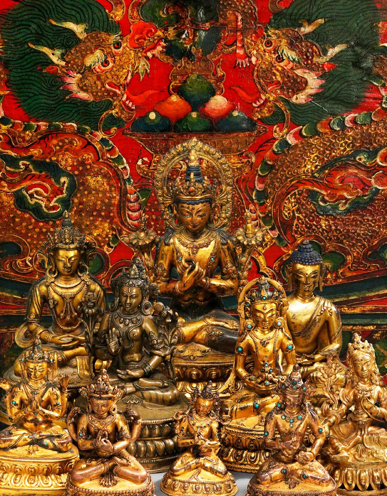 Vajradhara, meaning ‘diamond holder’, is considered the primordial Buddha, representing the ultimate essence of enlightenment, and is credited with being the source of the Buddhist tantric texts.