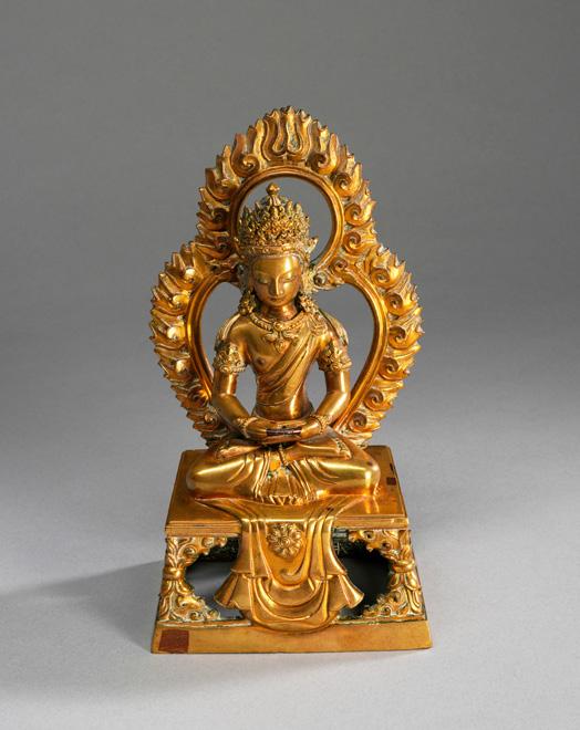 A TIBETAN GILT-BRONZE FIGURE OF AMITAYUS