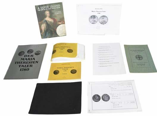 Maria Theresa Thalers: a small collection of reference literature, including: Walter Hafner, ‘Lexicon of the Maria Theresien Thaler 1780’; Cara Semple, ‘A Silver Legend / The Story of the Maria Theresa Thaler’, and other material.