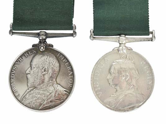 Notes: Francis Graham Arnould was born in Kensington in 1875 and was educated at St Paul’s School and at the City and Guilds Engineering College in London. Moving to India, he joined the Bombay, Baroda & Central India Railway, in which he rose to the position of Chief Engineer in around 1921. He was commissioned in the Indian Volunteer Force in November 1899 and advanced to Captain in the B.B. & C.I. Railway Battalion in January 1912. In the following year, he married Barbarina Helen Seton (neé Dury) at St Cuthbert’s Church, Kensington (see lot 4). He was awarded the I.V.D. in 1921, the Gazette of India entry (05/11/1921) giving his rank as Major. He retired in 1928, in which year he was also created C.I.E (London Gazette 04/06/1928) for his services in railway engineering. Returning to live in England, he settled on the South Coast where he served as a councillor in Battle, Sussex. In the 1939 Register he is listed as the Head Warden of Battle A.R.P.. He passed away in 1941.
