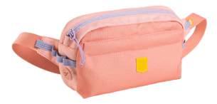 Materials: 600D Recycled polyester fabric. Recycled polyester webbing. Drawstring closure. Lightweight triangle clip. Adjustable waist belt. Plastic buckles and adjustors.