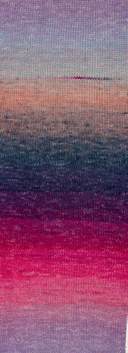 Aus einer hochwertigen Baumwollmischung zaubert unsere Garnneuheit fließende Teile mit mattem Glanz. Für die exotisch anmutende Optik wurde ihr weicher Farbverlauf markant überdruckt.