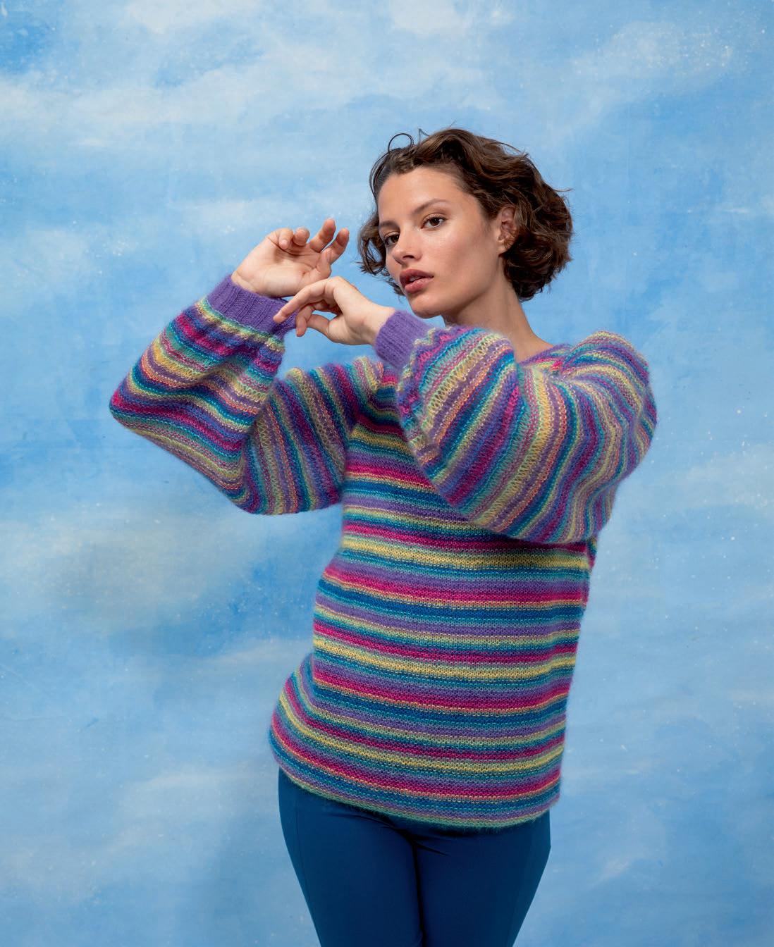 We at LANGYARNS are almost literally floating on cloud nine. Spring has brought renewal and slowly made way for Summer. In this new world of colours, good-mood-colours take centre stage. Go for Colour-Blocking, a little colour popping or tone in tone.... „Dopamine Dressing“ means nothing more than letting you glow in colours that make you feel good. It increases the release of dopamine in your body, the chemical we create to feel good. This season is all about optimism and we bring you a whole rainbow. Dress in a way that brings you joy and lifts your mood by combining different colours, textures and styles. Don‘t dress to impress, dress to boost your dopamine level. You will feel full of vital energy and positivity.