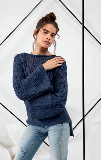 Die Fasermischung aus feinster Baumwolle und hochwertiger Viskose machen aus diesem Garn einen Alleskönner. Der hautfreundliche Griff, die Weichheit und das Volumen durch die innovative Konstruktion geben dem Garn einen „wolligen“ Charakter. Ein typischer Vertreter der Ganzjahresgarne. Le mélange de fibres de fin coton et de viscose de haute qualité font de ce fil un produit polyvalent. Le toucher doux et le volume obtenus par des procédés innovatifs donnent des qualités „laineuses“ à ce fil. Parfait pour être utilisé toute l‘année. The fibre combination of finest cotton and high quality viscose make this yarn a yarn for all purposes. The skin-friendly handle, softness and volume, with innovative constructions give the yarn a „woolly“ character. A typical example of an all-year-round yarn.