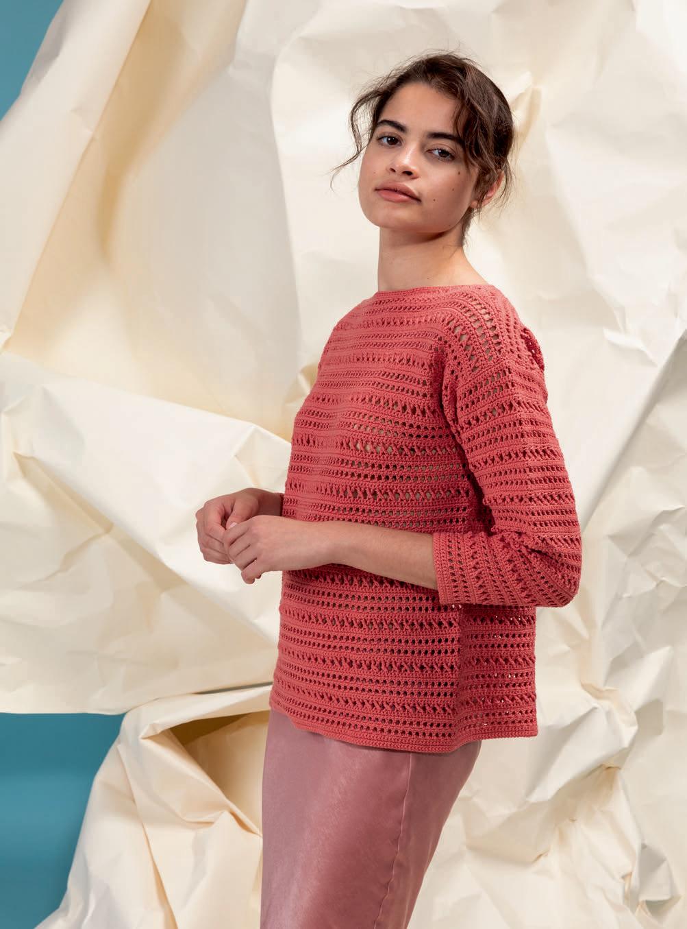 L‘importante part de coton en fait un fil respirant à couper le souffle. Et avec 135 m pour 50 g, vous pourrez réaliser un joli modèle en un tour de main.
