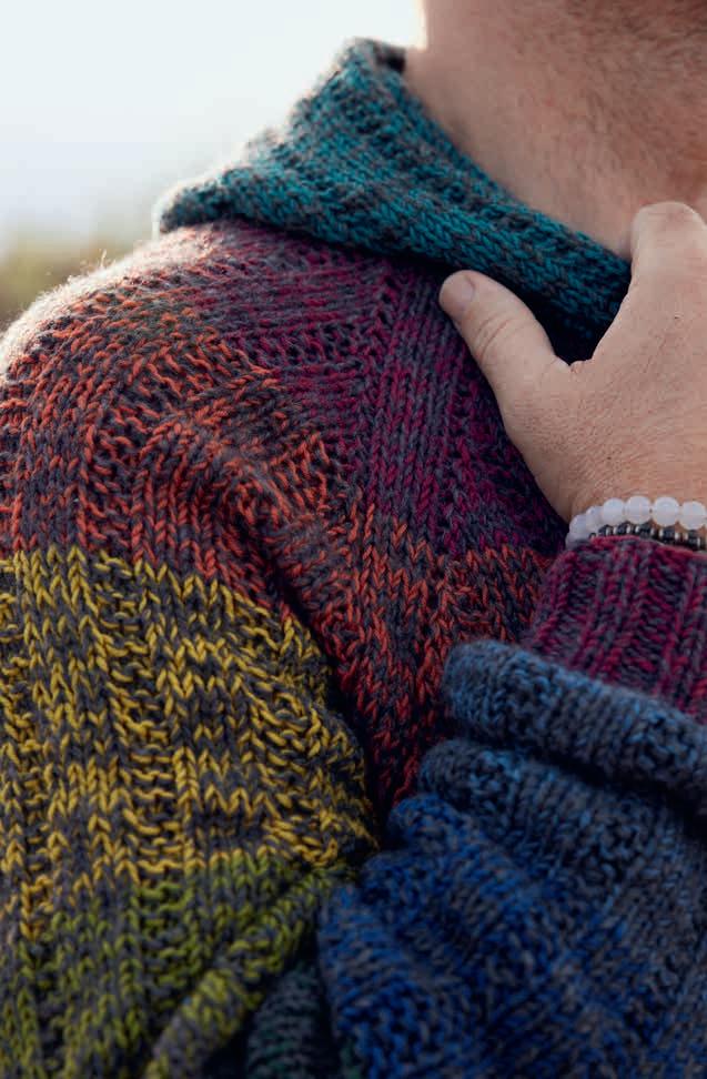 „Rollkragenpullis sind ein toller Jackenersatz für die Übergangszeit. Hier habe ich ein klassisches Schurwoll-Tweedgarn mit dem changierenden Puno Due verstrickt. Dazu ein großes RechtsLinks-Muster – so wirkt das Ganze sehr modern.“