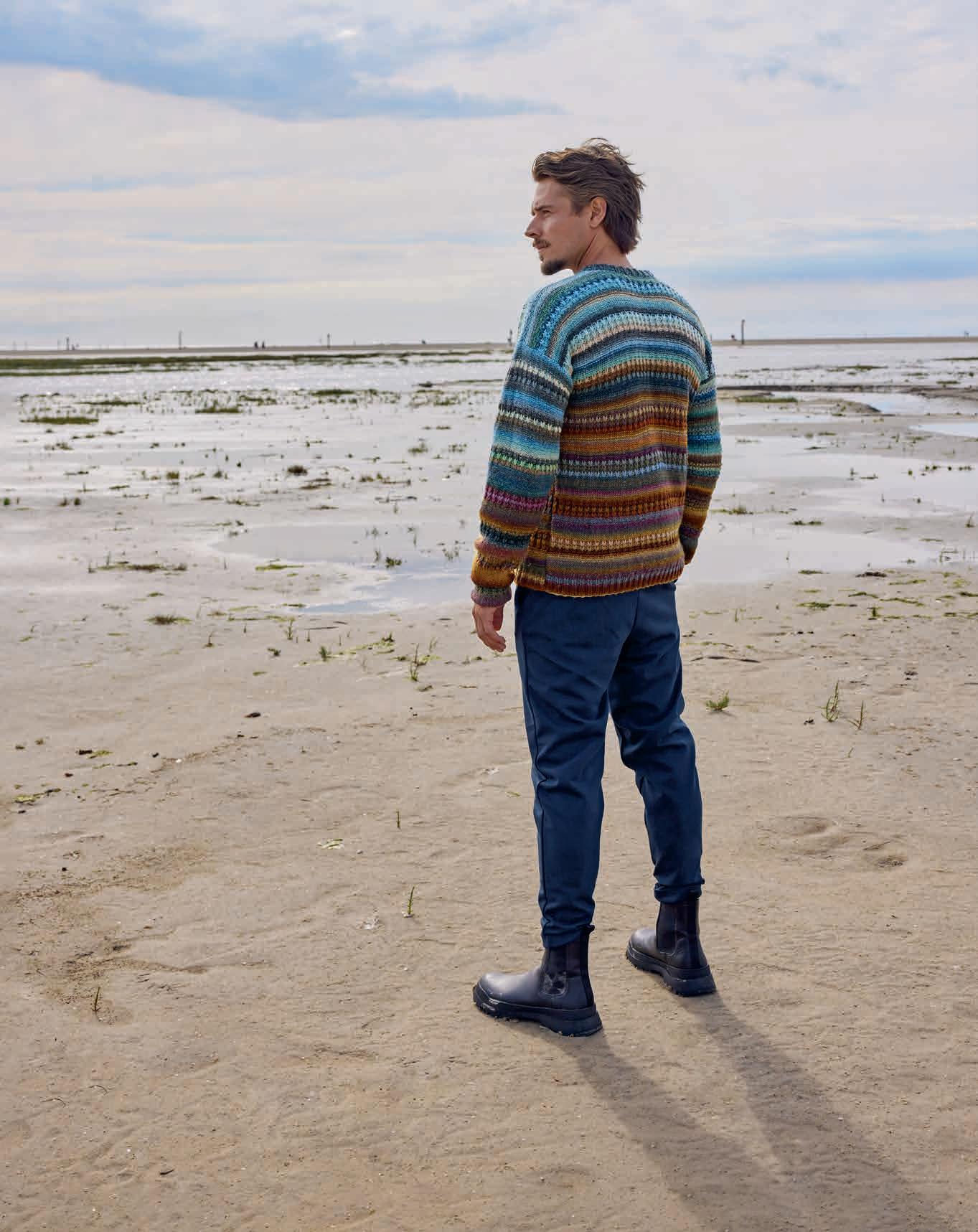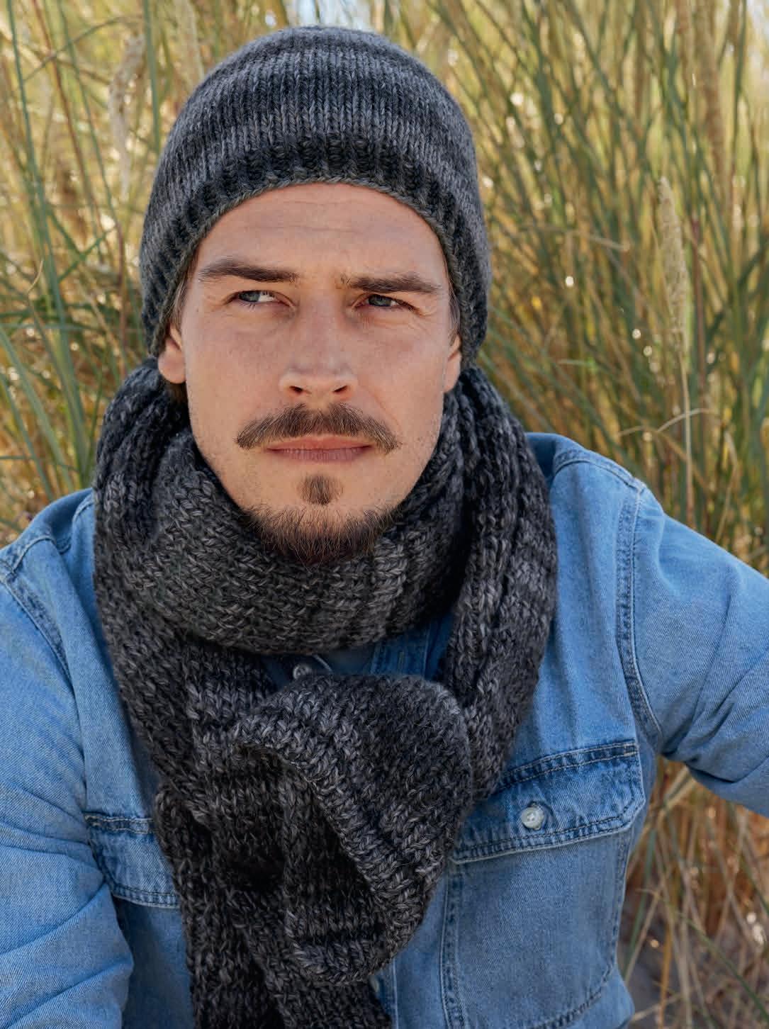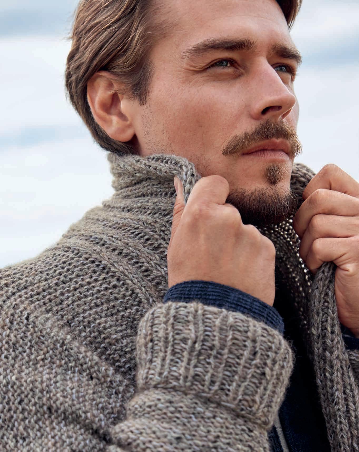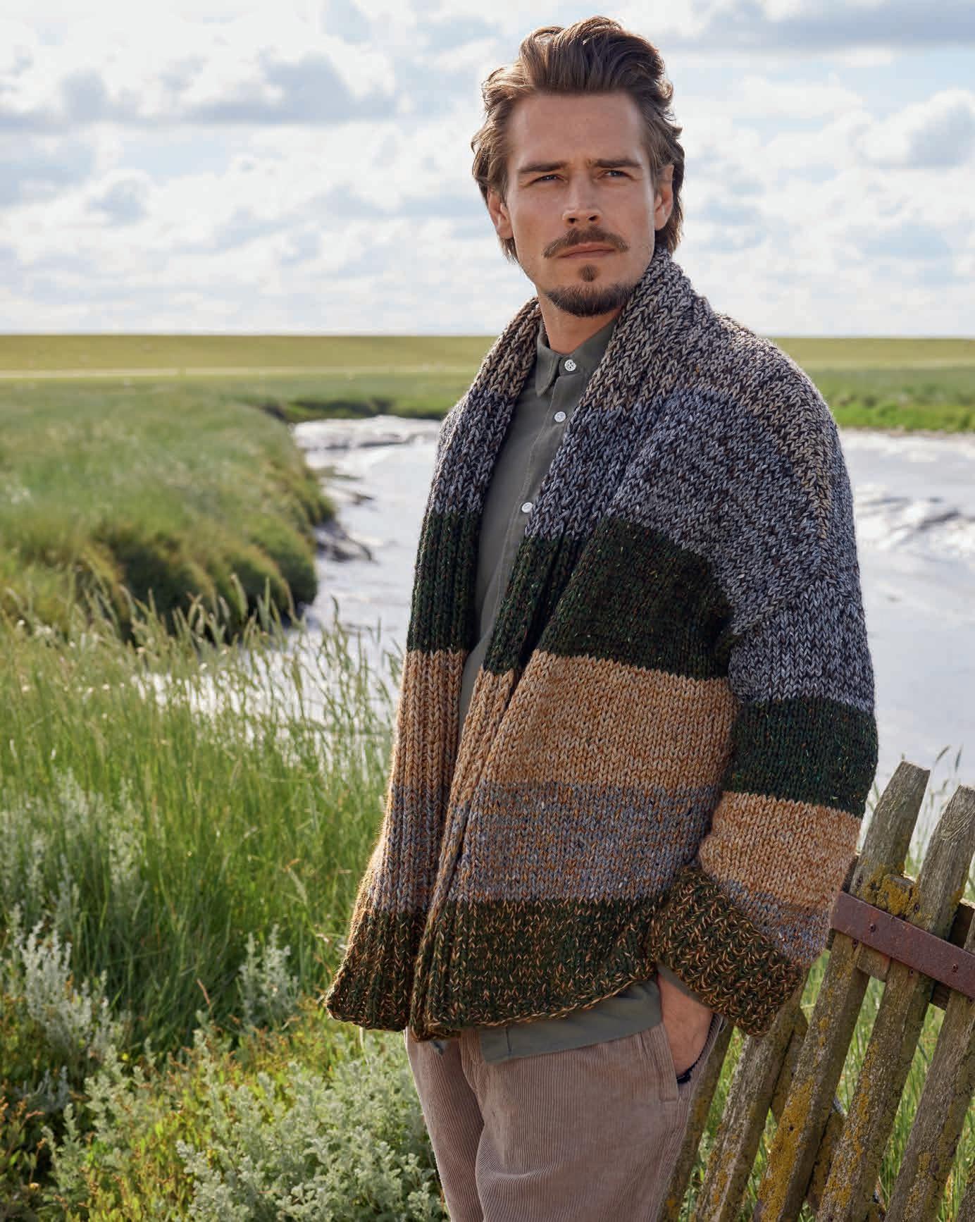 Thorsten Duit präsentiert drei lässige StrukturmusterModelle aus seinen Lieblingsgarnen von Lana Grossa. Beim Modeln bekam er Unterstützung von seiner bezaubernden Labrador-Hündin Canella.