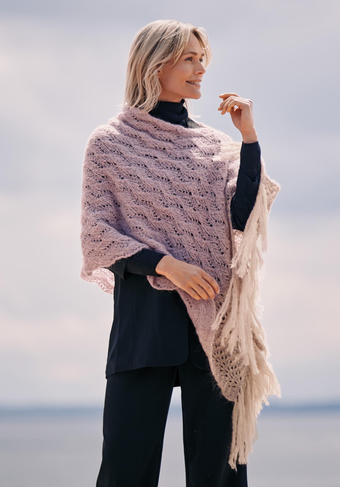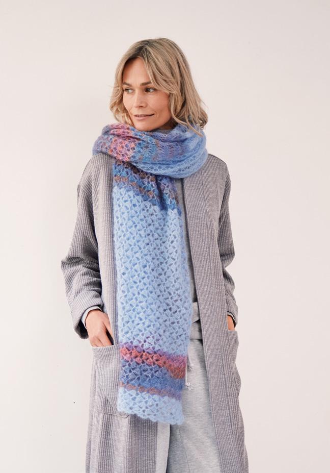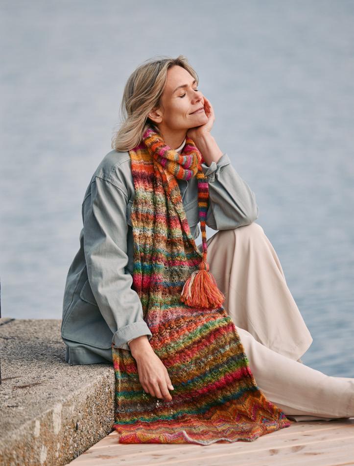 Winter ist, wenn der Natur die Farben ausgehen und die Sonne auf Sparflamme schaltet. Ein bisschen Magie kann da nicht schaden –zum Beispiel in Form von kuschligen Schals und Tüchern, die sich unkompliziert zaubern lassen. Ihre zarten bis leuchtenden Trendtöne liefern positive Energie. Dazu gibt es dufte und anschmiegsame Garne, die selbst großzügige Styles in komfortable Leichtgewichte verwandeln. Besonders markant wirken die strukturierten Multicolor-Modelle. Aber natürlich finden Sie in dieser Ausgabe auch Modelle in ruhigen Unis, die durch klassische Allover-Muster effektvoll aufgelockert werden. Bei den Silhouetten setzen Pelerinen-Schals, Kurz-Capes und asymmetrische Details interessante Akzente. Und dann gibt es da noch Colorissimo 2, eine Garnneuheit, die ihre Farben wie von Geisterhand wechselt