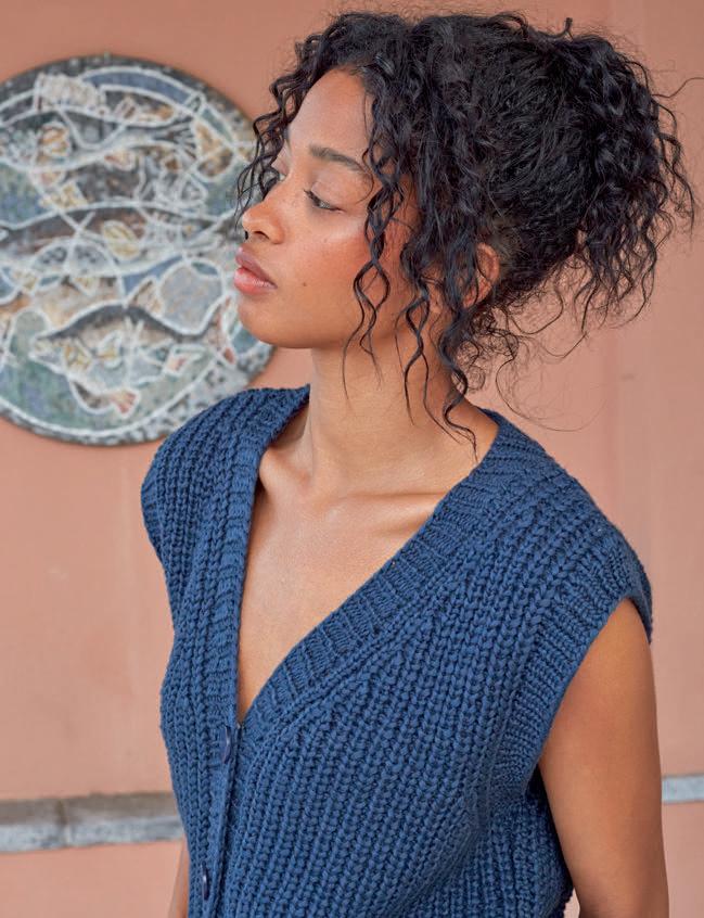 HAPPINESS. SOMETIMES YOU DON'T HAVE TO MAKE A BIG STATEMENT TO LEAVE A LASTING IMPRESSION. THIS CARDIGAN IS AN EXAMPLE OF THAT. A BEAUTIFUL FEMININE SLEEVELESS CARDIGAN WITH A CLASSIC TOUCH. LITTLE WAVES VEST PATTERN# 277-026-001 71