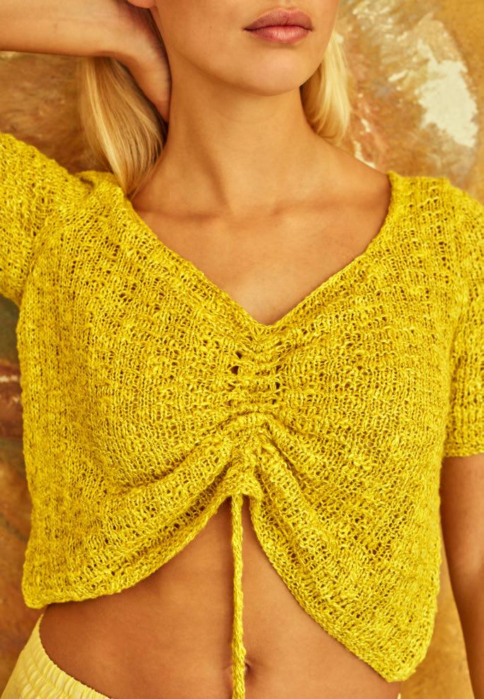 SUNSHINE. THIS TOP IS PERFECT FOR THE SLIGHTLY COOLER SUMMER DAYS. FOR EVENINGS AT THE BEACH WHEN YOU ARE ENJOYING THE SETTING SUN AND THERE IS JUST A SEA BREEZE BUT WHEN YOU WANT TO LOOK YOUR BEST OF COURSE.