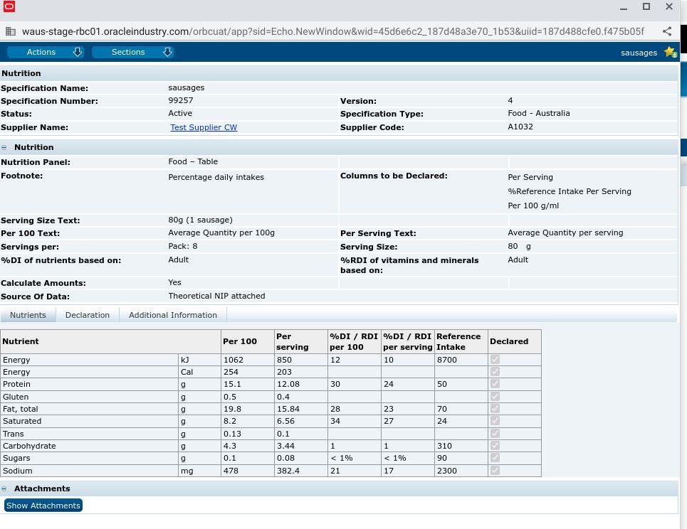 In Sphere: Update Spec adding Nutritional details and CoOL data