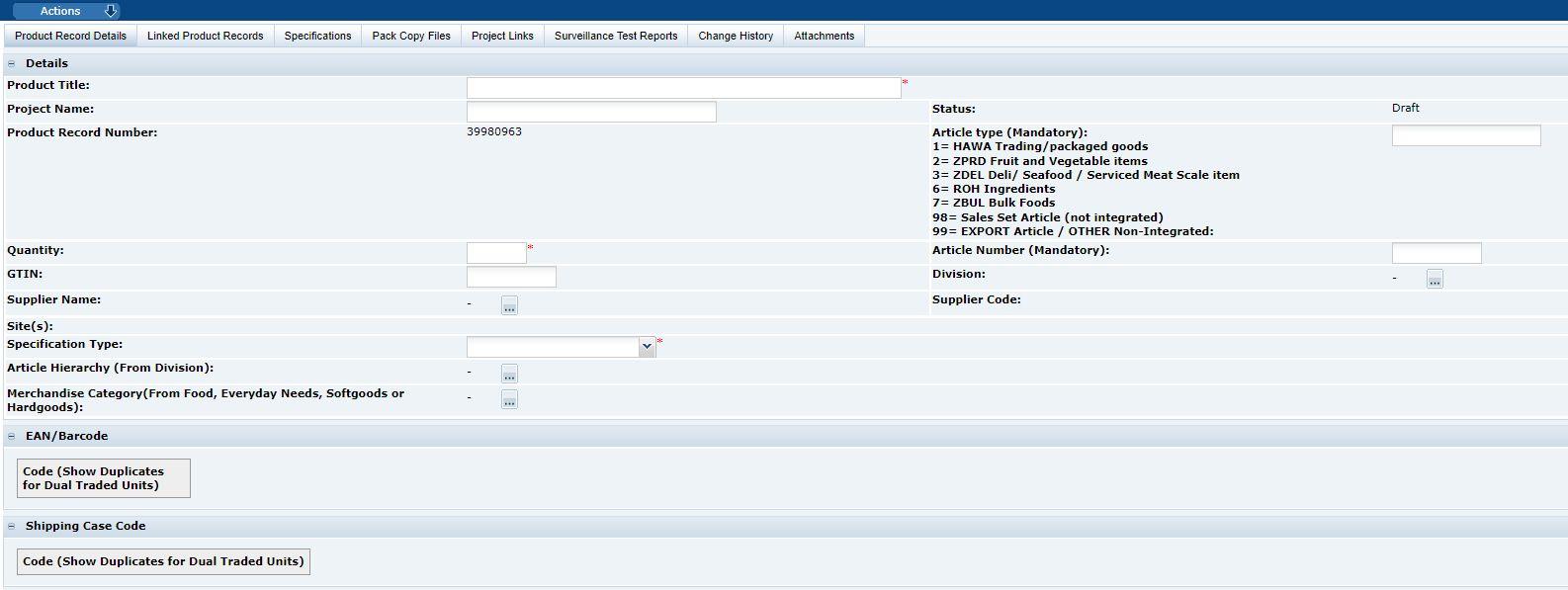 Product Record - For every SKU there must be a product record. Product Records for the same product can be attached to one specification.