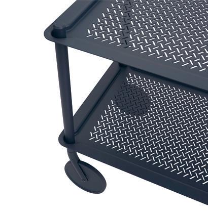 The Flow Trolley brings the concept of functional design into a modern context through its grooved trays in embossed metal for a contemporary expression.