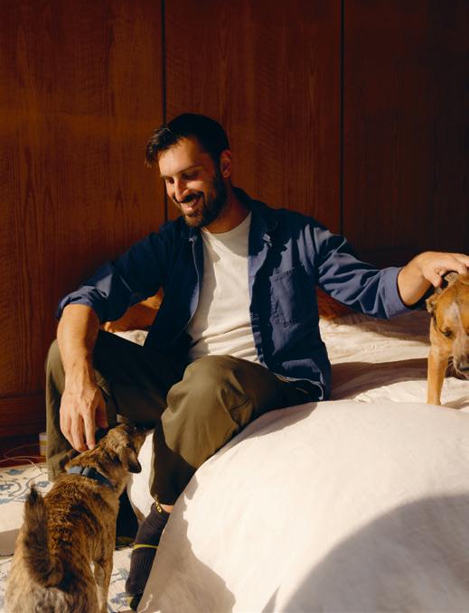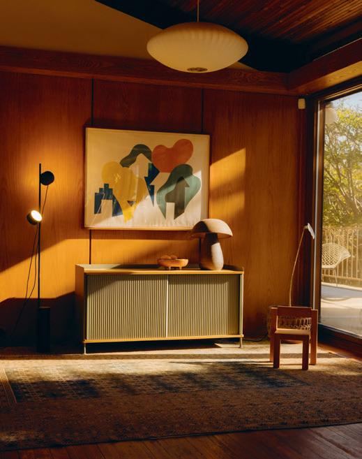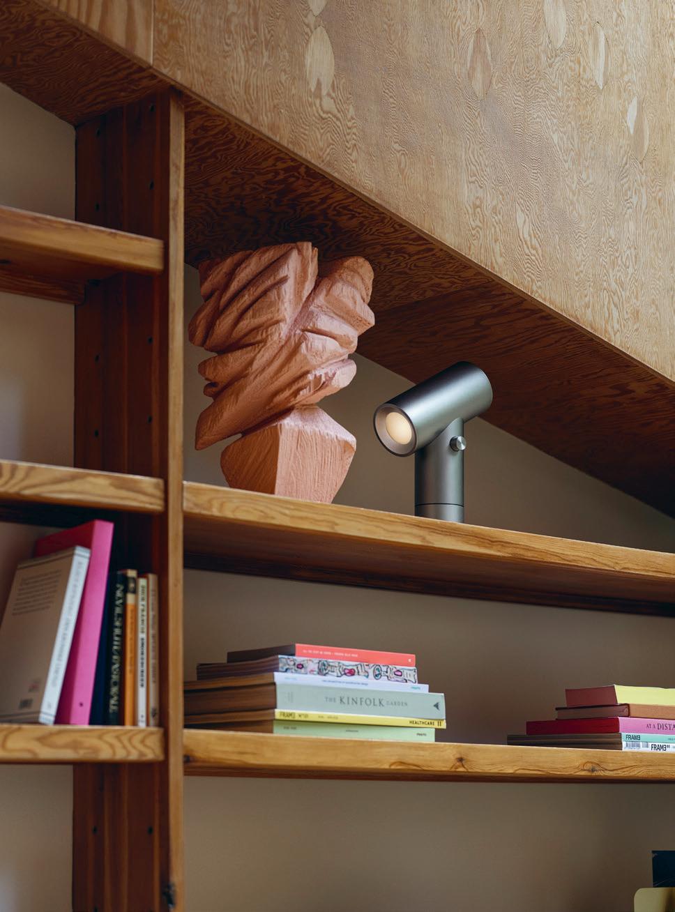 His sensitivity in restoring the home’s special details is mirrored in the intuitive way he has designed its interior, populating it with chairs by designers he admires, antique rugs from his father’s Persian rug store, and the odd custom piece built in his workshop, too. The open-plan layout is all warm white walls, honeyed light and organic materials— Nicholas will choose forms and textures based on what he sees, and what’s missing. But underpinning his slow, steady approach is a rigorously honed eye—one attuned by years of creating instruments from reclaimed skateboard decks, and process-driven experiments with furniture-making.
