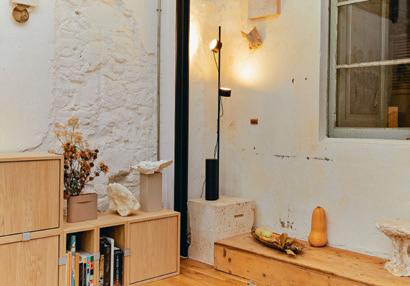 Elsewhere, they display their treasures—remnants of past projects, industrial processes, organic rocks or pleasing found objects. They play, they reflect, they exist together. They continue to grow the space itself—the outside terrace, currently a space for messy work, is very much a work in progress, and they are also planning a room for Rita, for the future. If Turbina’s work explores the perception of time and space through sculptural works, then it’s from this base that their ideas originate. Fluidly, organically. At their own pace.