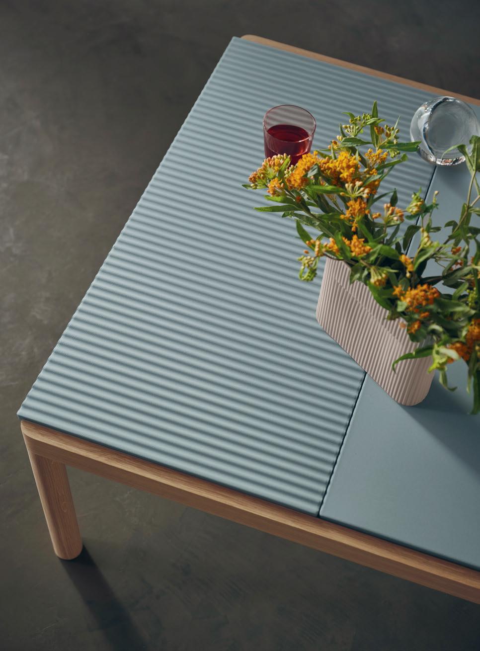 Inspired by the traditional tile table, the Couple Coffee Table is a refined merging of materials — FSC™️-certified wood and a tactile ceramic stoneware. This tactility is enhanced by the option of two different table top tiles; one plain and smooth, the other wavy and sculptural.