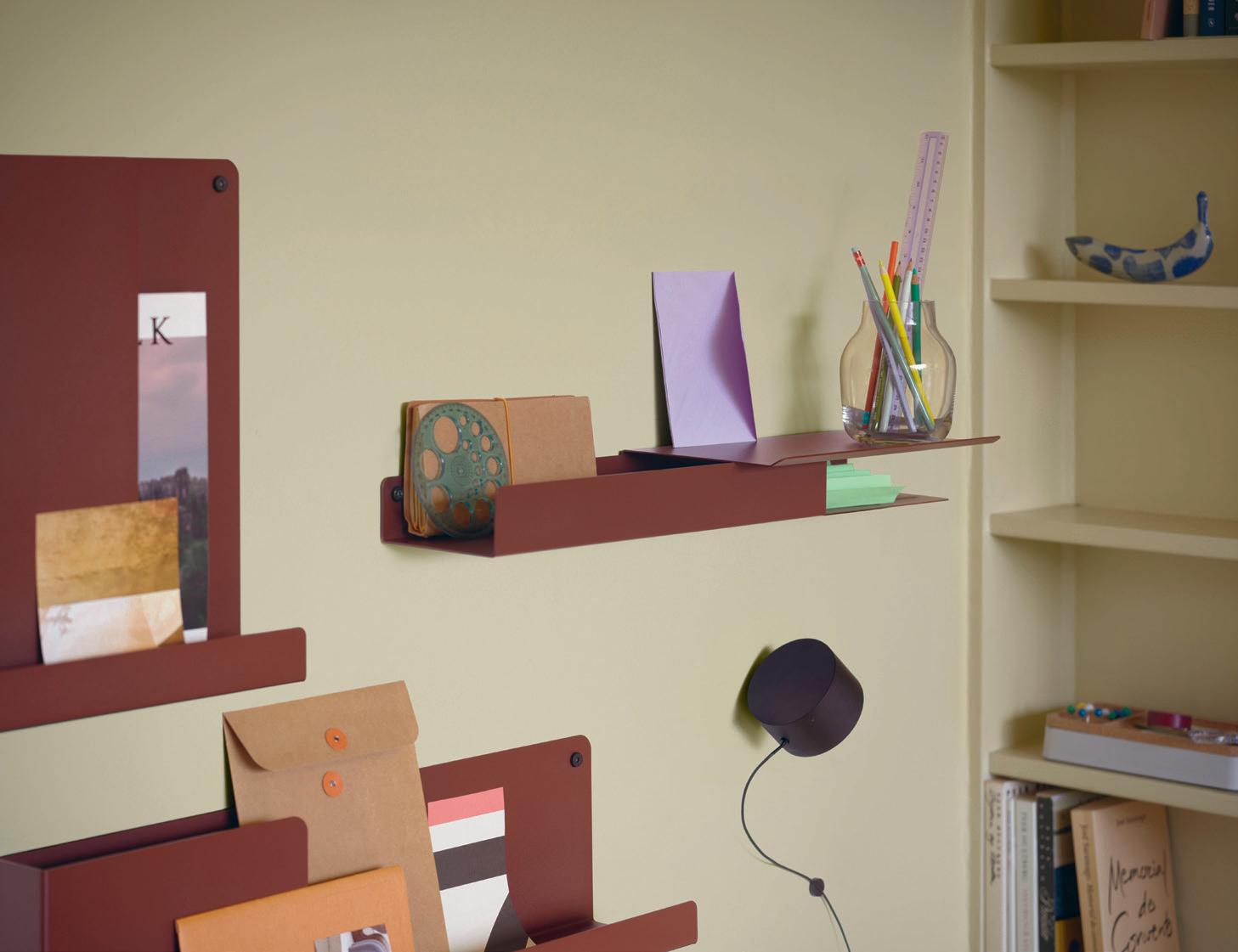 Imitating the look of folded paper yet shaped in metal , the Folded Shelves have a contemporary, functional character. The Folded Shelves are a modern and friendly way to add storage to any home.