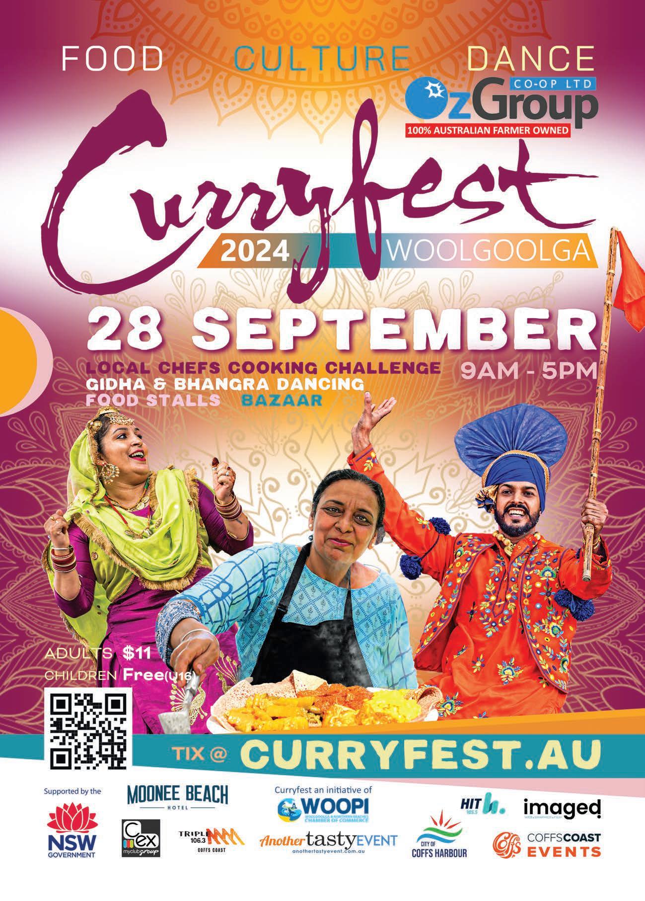 “Curryfest is more than a celebration of Woolgoolga’s unique cultural diversity, it is a fundraiser for various local volunteer groups who help on the day and it generates enormous economic spin off by bringing visitors to town”, Curryfest Committee chair Pam Fayle said, “Visitors from outside the Coffs Coast stay on average more than three days in our area spending money at local shops and businesses”.