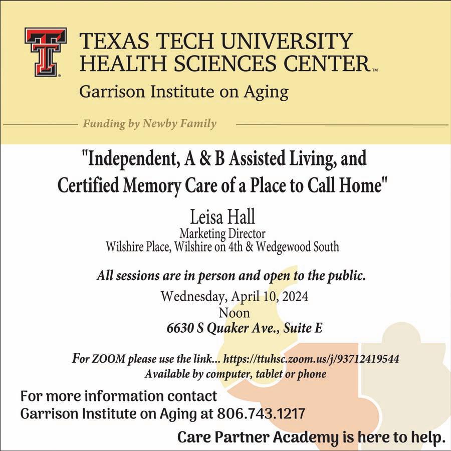 Golden Gazette • April 2024 • Page 23 Pick up a print edition at any of our 100+ locations throughout Lubbock or go online to www.WordPub.com click on “Seniors” click on “Golden Gazette” choose a ‘pdf version’ or a ‘ ip-the-page’ version. In Print & Online 2 ways to read the Golden Gazette: www.WordPub.com To subscribe to the Golden Gazette, call 806-744-2220. $30 for the year; $60 for two years. Our 36th year in publication Published monthly by Word Publications