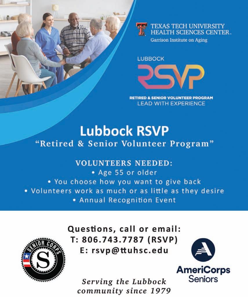 Sign up online at www.lubbockmealsonwheels.org/volunteer, or call 806-792-7971 and ask for Nicole or Vicki.