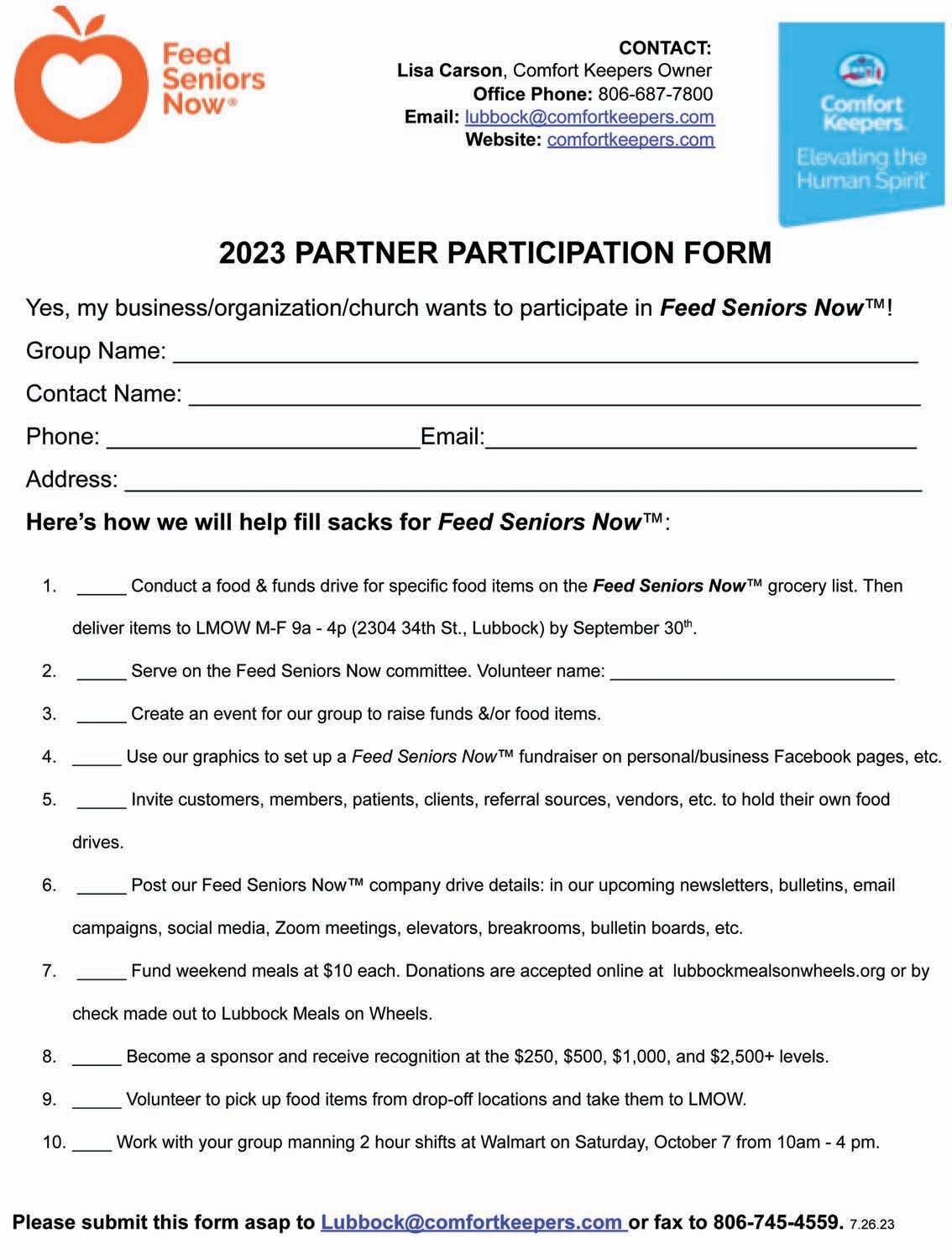 For sign-up forms or more information, call 806687-7800 or email Lubbock@comfortkeepers.com.