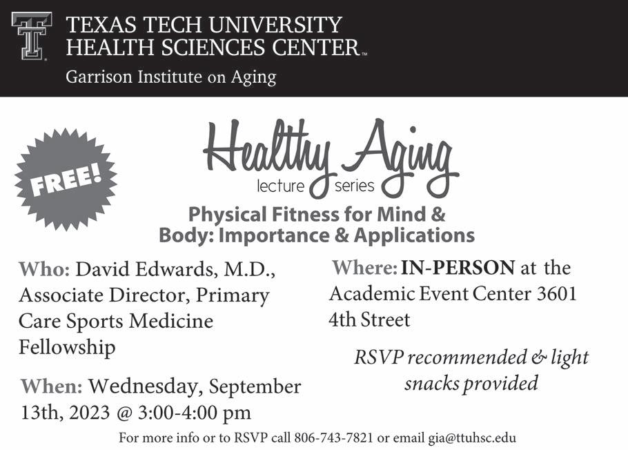 The buffet lunch, program and chance to win door prizes is set for 11:30 a.m. to 1 p.m., Sept. 12 at the Lubbock Country Club, 3400 Mesa Road.