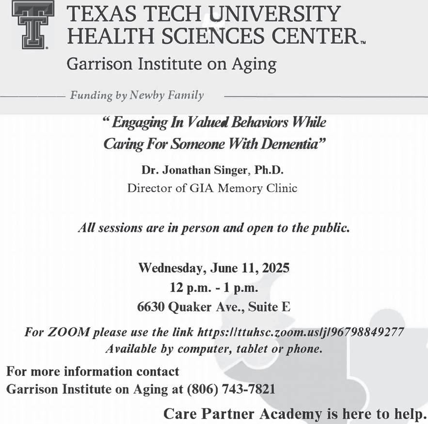 By TEXAS TECH HEALTH SCIENCES CENTER Garrison Institute on Aging